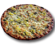 Ranch Base with Marinated Grilled Chicken, Bacon, Fresh Diced Tomatoes and Onions then topped with Cheddar & Mozzarella.