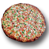 Red Sauce Base with Crushed Garlic, Mozzarella Cheese, Pepperoni, In-House Italian Sausage, Onions, Red Hot Cherry Peppers and Mushrooms Plus Sesame Crust for a Special Twist.
