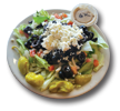 Gyro meat (Beef/Lamb) over a bed of lettuce, tomato, onion and Feta mixed together with Greek Dressing then wrapped.
